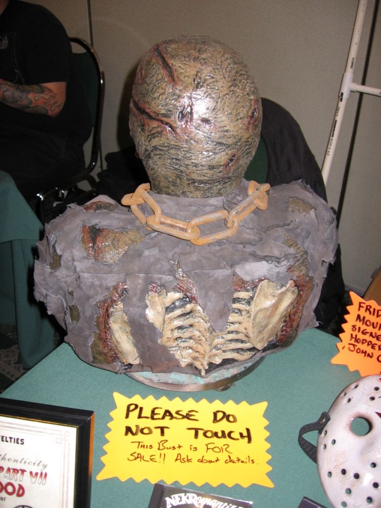One of the funnest parts of any convention experience is taking a walk through the dealer’s room. You never know what out-of-print goodies you’re going to find. Or you may stumble upon a DVD for a long lost film you have fond memories of. Or you may see a slew of awesome props from old productions. Or you may bump into some old friends that you always end up seeing at these cons. One way or another, the below pictures represent a walk through the vendors room, and all the cool props you might see along the way.