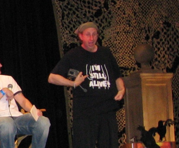 Next up was Part Two of the ‘FRIDAY THE 13TH’ panel, this time with various directors of the series. From left to right, we had Adam (Jason Goes To Hell) Marcus, John (Part VII) Buechler, Tom (Part VI) McLoughlin, Joseph (Part IV) Zito, and author Peter Bracke moderating for a second day in a row. The surprise visitor was none other then Stu Charno from ‘Friday Part 2’, who jumped up on stage, took a photograph of the audience and pointed to his “I’m Still Alive” T-Shirt. It was very interesting to hear the different approaches from each director towards their entry in the series and it seems a lot of these guys are big fans of each others work. For example, Joe Zito admitted to loving Tom’s film (Part 6), and Adam Marcus was thrilled to share the same stage with the directors that influenced him when it came time for his Jason pic. Joe talks a bit about the talented group that was on board for his film, including Corey Feldman and of course… Crispin Glover; whose “dance” scene was an improvision on his part. “That was all Crispin. That was a dance he would do in clubs.” John Buechler mentioned how disappointed he was with the absence of Kane Hodder from ‘Freddy Vs. Jason’. “For me, it’s personal. Yeah, I saw it, and it was good. But Kane should’ve been in that movie. And he would’ve brought so much more to the character.” Let’s not forget, John’s the one who first had Kane hop on board as Jason with Part 7. They are all looking forward to what future director’s might bring to the series, and openly admit to being really excited by the rumors of Quentin Tarantino’s involvement, even though those rumors turned out to be false. A fantastic panel from a group of fantastic directors.