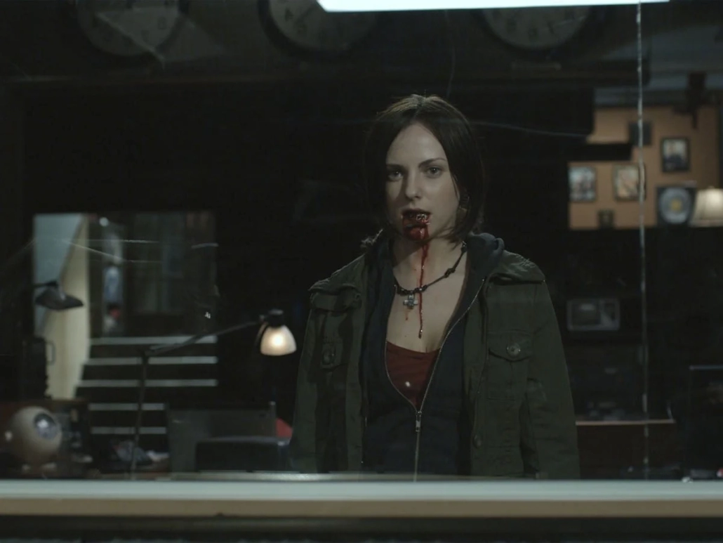 A welcome change of pace comes from a vague report about a hostage situation which seems quickly resolved. Soon after there’s a call about a riot at a doctor’s office. Then another report about a group attack on strangers. None of which seems to show up on police band traffic or the internet. The station is temporarily hacked with a transmission in French warning people to ‘not use terms of endearment with loved ones and not to translate this message into English’, causing even more confusion (with Grant subsequently translating.) Soon the calls get more and more extreme, quarantine is apparently declared and the crew notices this aggression/confusion surfacing in themselves: There is indeed a virus spreading amongst the townsfolk, causing the type of mob dynamics genre fans have welcomed in Romero’s Dead films or 28 Days later. Uniquely enough, the virus seems to be embedded in human speech. Words or phrases are somehow tainted, and driving people off the deep end and Grant’s radio station may be key in its spread, or its dispersal.