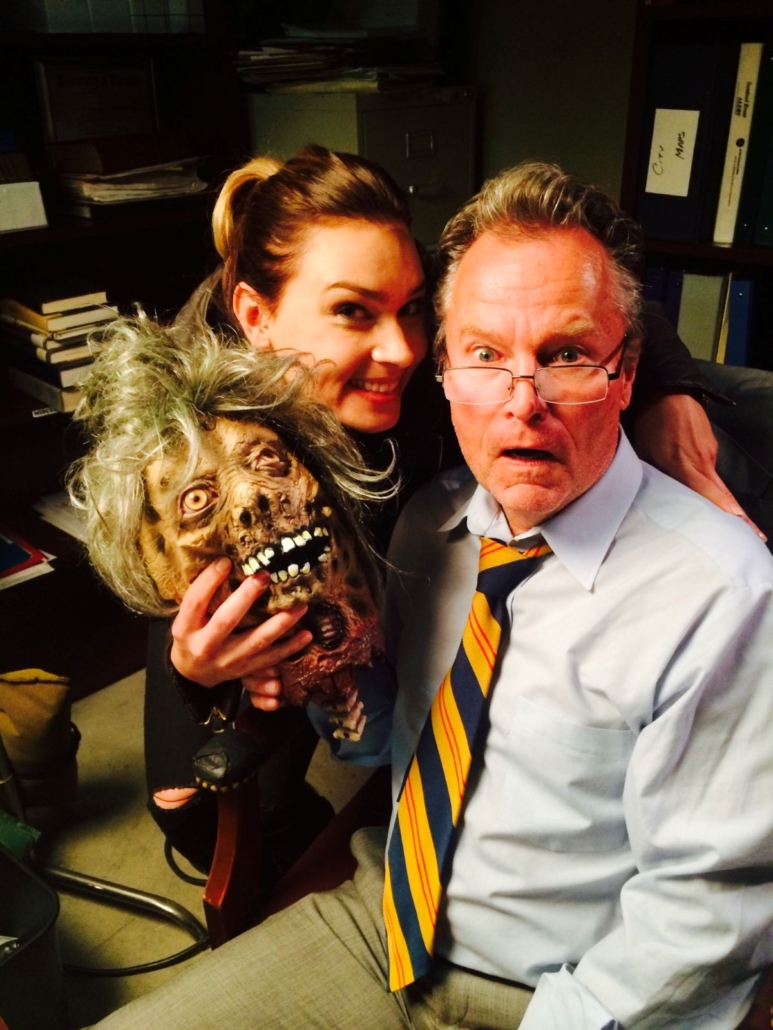 NM: The great thing about working with a director is that they understand what you’re trying to achieve. And when you say “I’m going to splash some blood around,” they say sure, of course, because if I were in your shoes I would do the same thing! They don’t mind the waiting and understand the low budget side of things. So Greg worked out great and again, just so much fun. These are cameos fans will spot and like. Axelle and I got invited to a writer’s lunch and Greg was there, and I had no idea he was in LA. Met him for the first time there and we hit it off, and became good mates quickly. So it was like, “hey, do you want to come have your head bitten off by a pumpkin?” “Sure! Alright!” Axelle suggested Cerina Vincent. She was in Paris so she came straight in and agreed to do the short. John Savage is great.